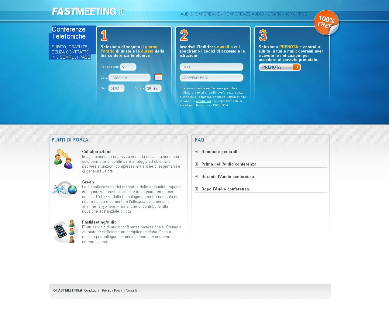 Fastmeeting is an interesting marketing initiative in Italy to promote the technologies and services for remote collaboration. The only cost that all participants must take is to connect a simple telephone number to our systems according to the tariff plan of your service provider.